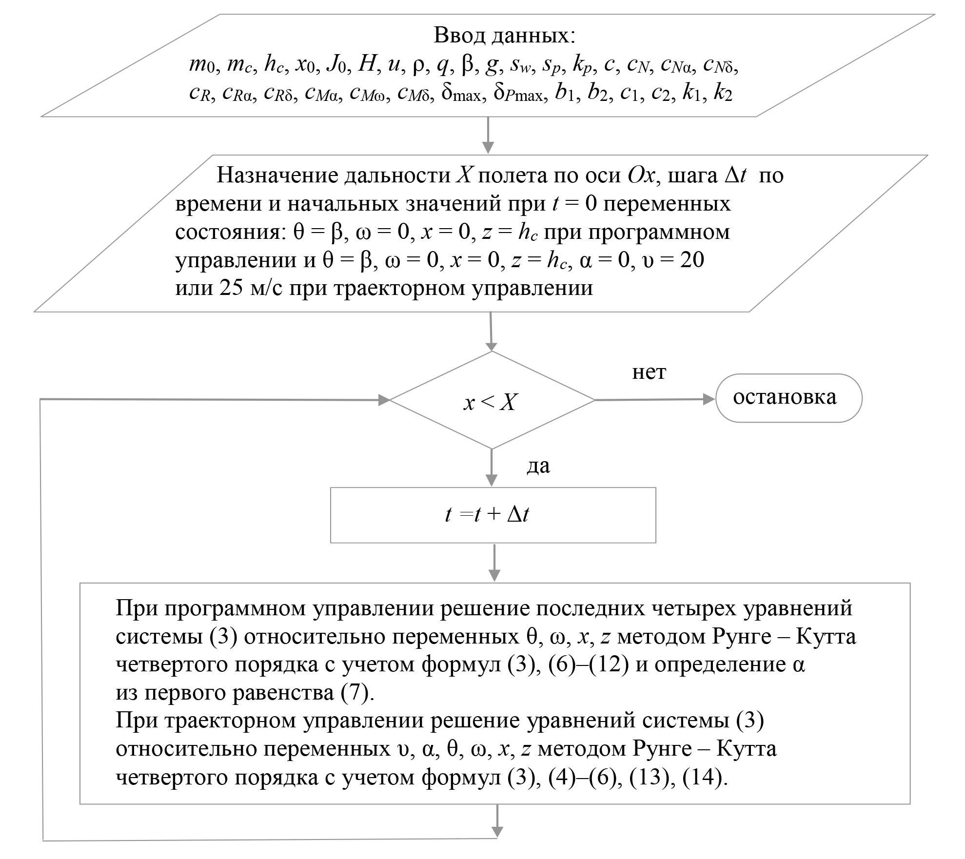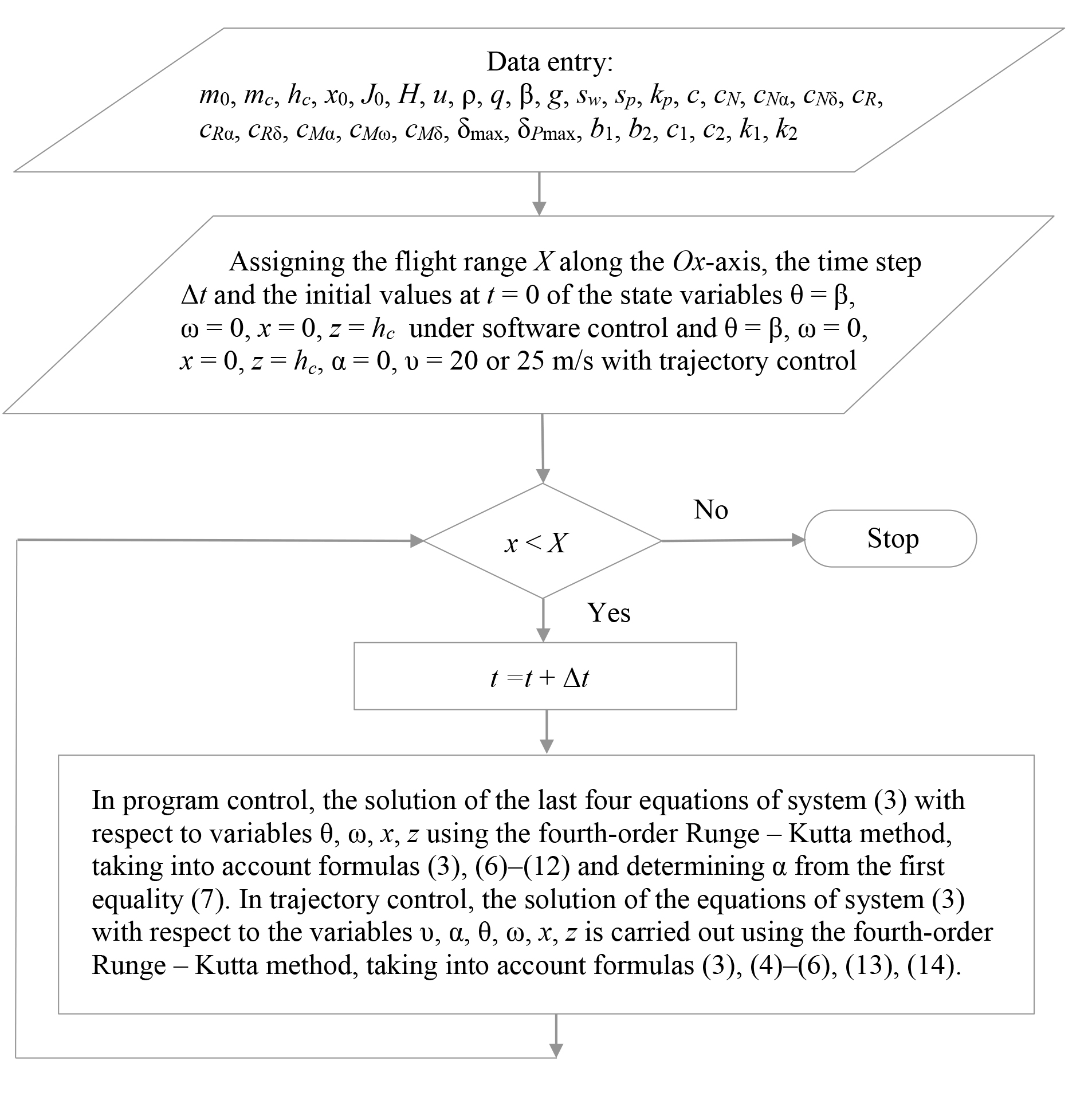 F i g. 4. Simplified flow chart for calculating flight altitude in software and trajectory control models