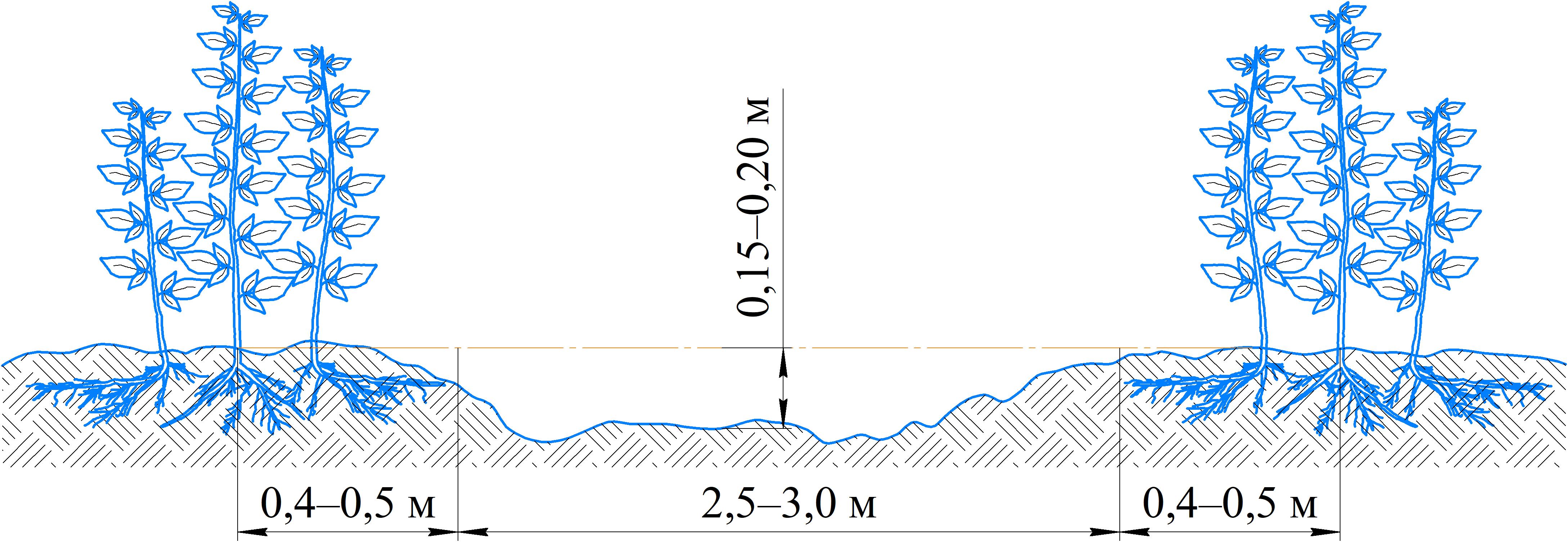 Fig. 2. Trough shape of the space between rows of berry crops in 4–5 years of operating plantations