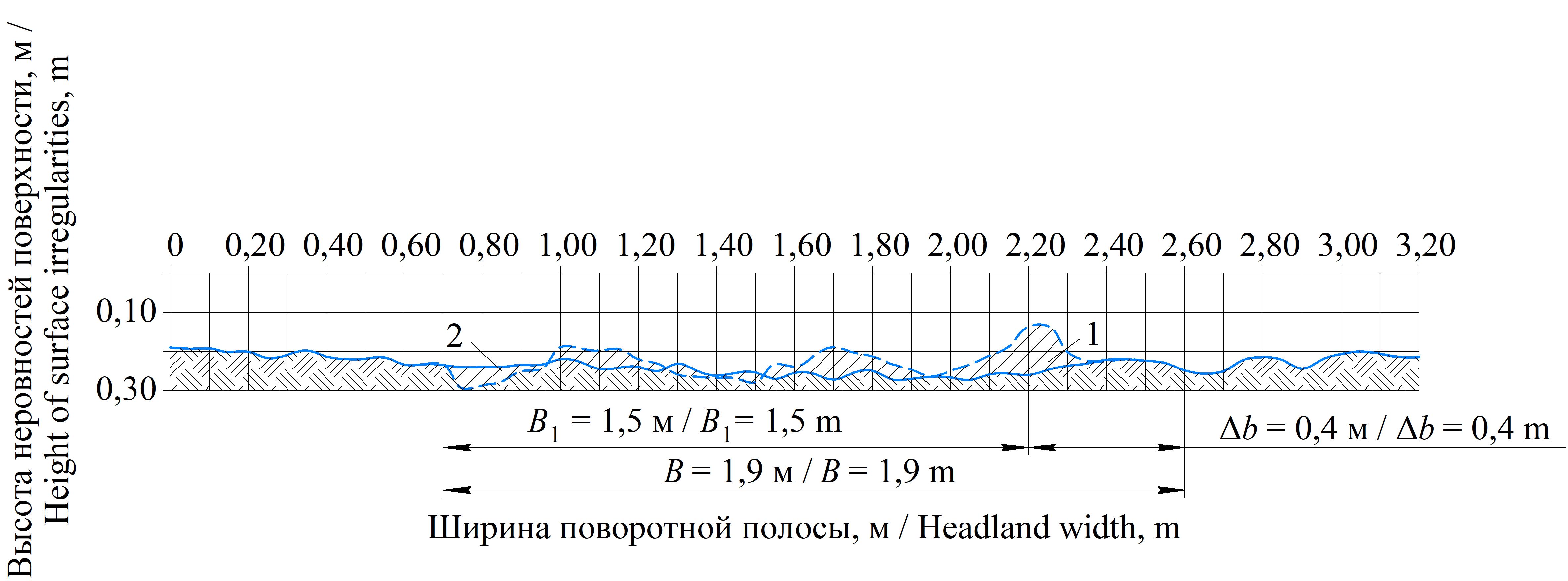 Выбор поворотных полос при проведении второй серии полевых экспериментов обусловлен тем, что дальность отброса почвенной ленты часто превышает ширину защитной зоны между крайним диском и основанием ряда ягодных кустарников. Вследствие этого фрагменты почвы неизбежно попадают внутрь кустов, исключая возможность корректного учета дальности ее отброса. Искажающее воздействие на результат может оказывать и корытообразность исходного поперечного профиля междурядий.