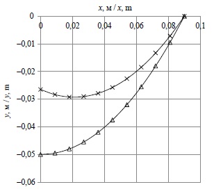 Как следует из (рис. 3), при любых значениях x параметры а в линии проходят через точку С (х = с, у = 0). Вершина параболы получена при х = b и у(b) = B = –a(c – b)2. При пересечении с осью вращения при x = 0, y(0) = A = ac(2b – c), получаем:
