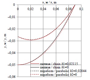 Fig. 7. Graph of superposition of parabolic and chain interpretation