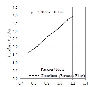 Discussion and Conclusion. The hydraulic characteristics of a two-circuit membrane pump are close to the equation of a straight line and are consistent with experimental