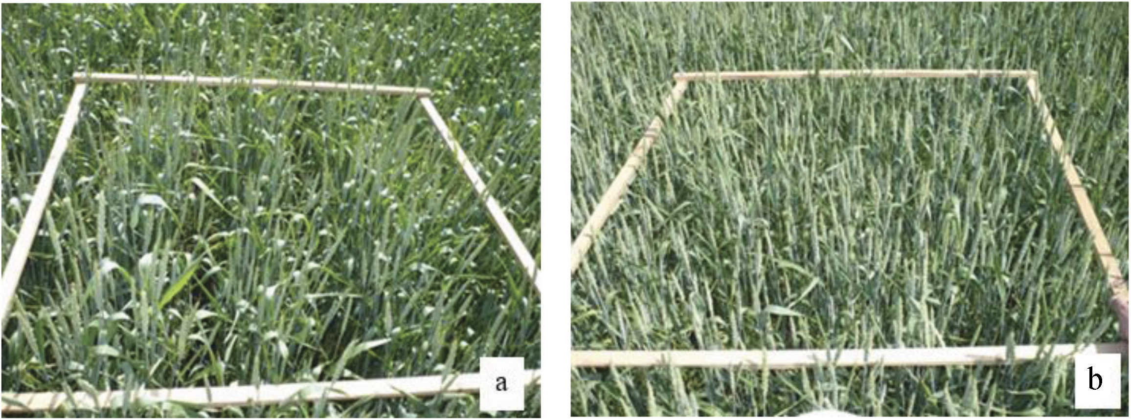 Р и с. 5. Состояние посевов озимой пшеницы РС-1 «Таня» с нормой высева 2,6 (а) и 6,5 млн шт/га (b)