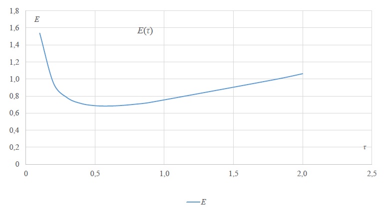 Fig. 3. Dependence of the energy E on the parameter τ in the program motion