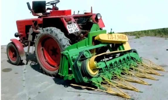 Эксперименты проводили в Федеральном научном центре лубяных культур (г. Тверь). Было изготовлено три льнотеребильных аппарата с поперечными ленточно-дисковыми ручьями: ТЛН-1,9П, ТЛН-1,9М (рис. 2, 3) и ТЛН-1,9К (рис. 4). Их агрегатировали с мобильным энергосредством (трактор Т-25А1). Скорость агрегата в опытах была 1,6–3,0 м/с. Рисунок 2 был использован в одной из предыдущих работ М. М. Ковалева8.