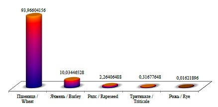 Fig. 3. The structure of the areas under winter crops in the Stavropol Krai, 2019 year