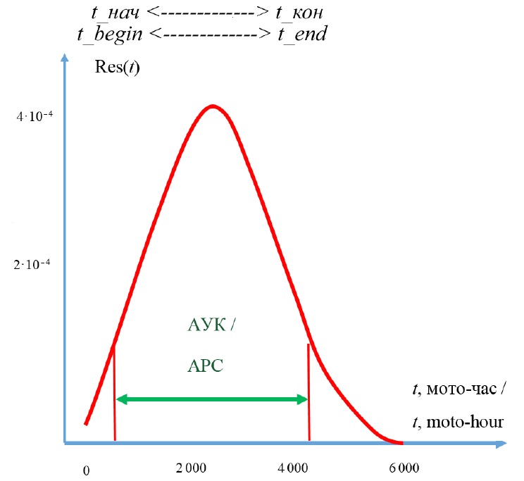 t_нач и t_кон – начало и конец АУК, мото-час; t – наработка, мото-час