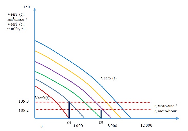 D1...D4 – tolerance system, mm3/cycle; t0 – work, moto-hour