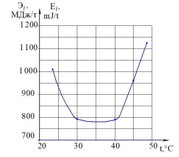 Эмпирическая зависимость энергоемкости технологического процесса Эi от температуры воздуха t на выходе из форсунки выглядит следующим образом:
