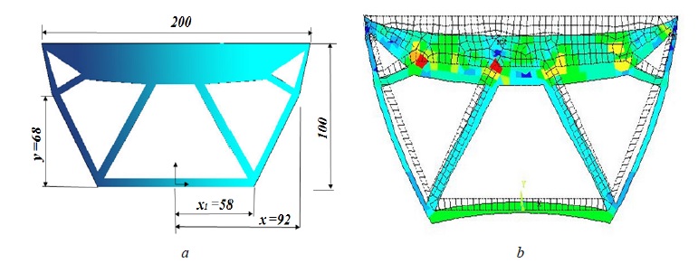 Optimization (RBTO) configuration when considering β = [1‒3]: a) geometrical model;