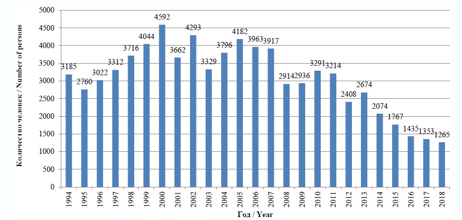 of persons awarded degree of Candidate of Sciences in 1994–2018