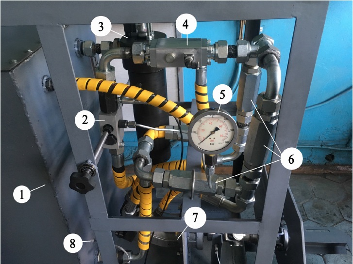 Fig. 4. Hydraulic loading device: 1 – tank;