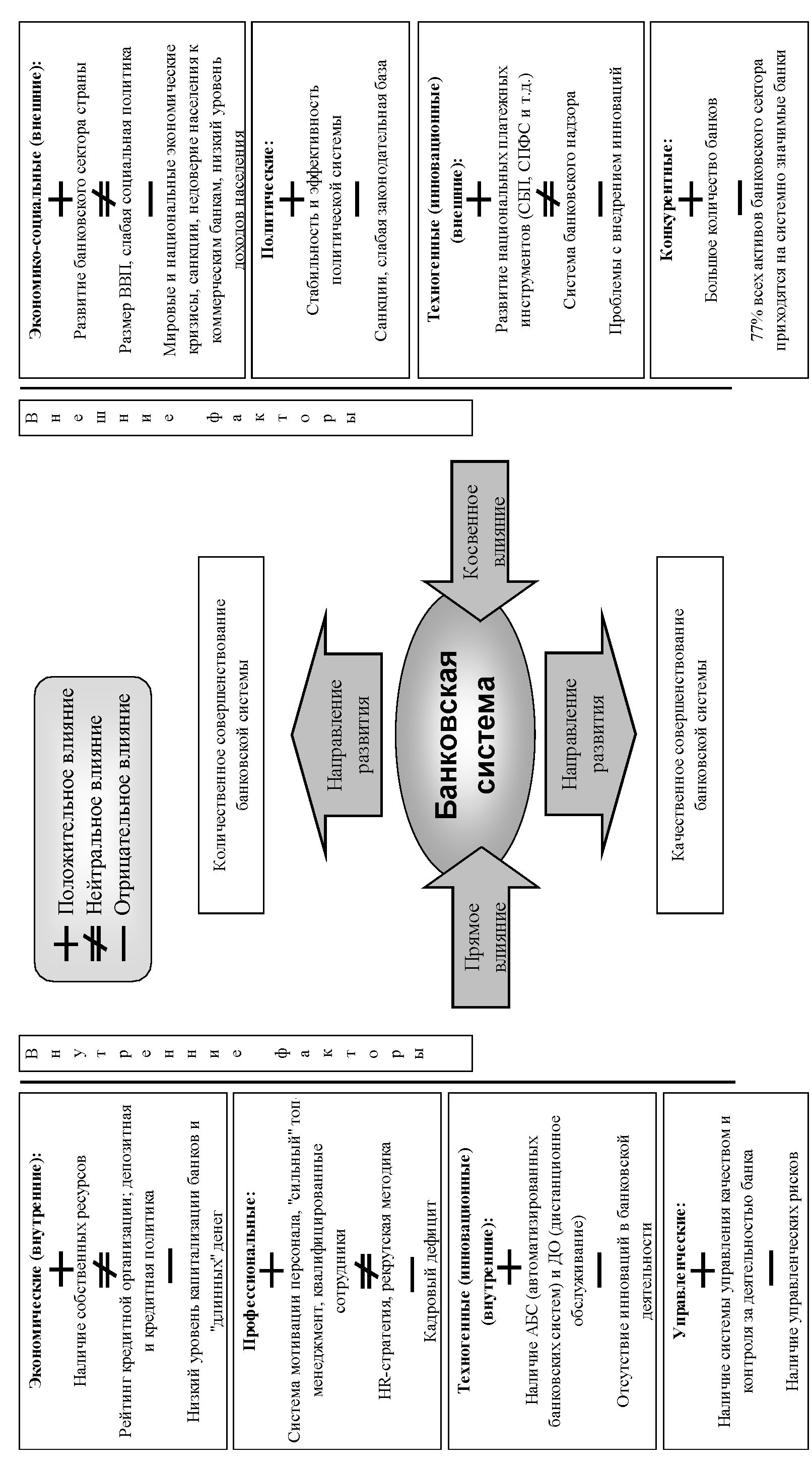 Выявление факторов, оказывающих отрицательное влияние на банковскую систему, позволяет определить «слабые» места и сформулировать перечень внутренних и внешних мероприятий по их возможному устранению или снижению степени негативности данного воздействия.