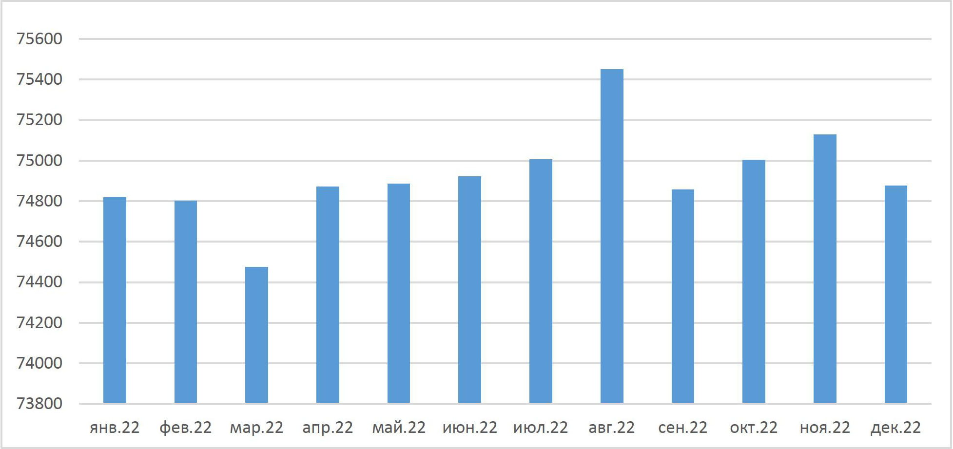 Рис. 4. Рабочая сила с января 2022 по декабрь 2022 гг. (тыс. чел.)