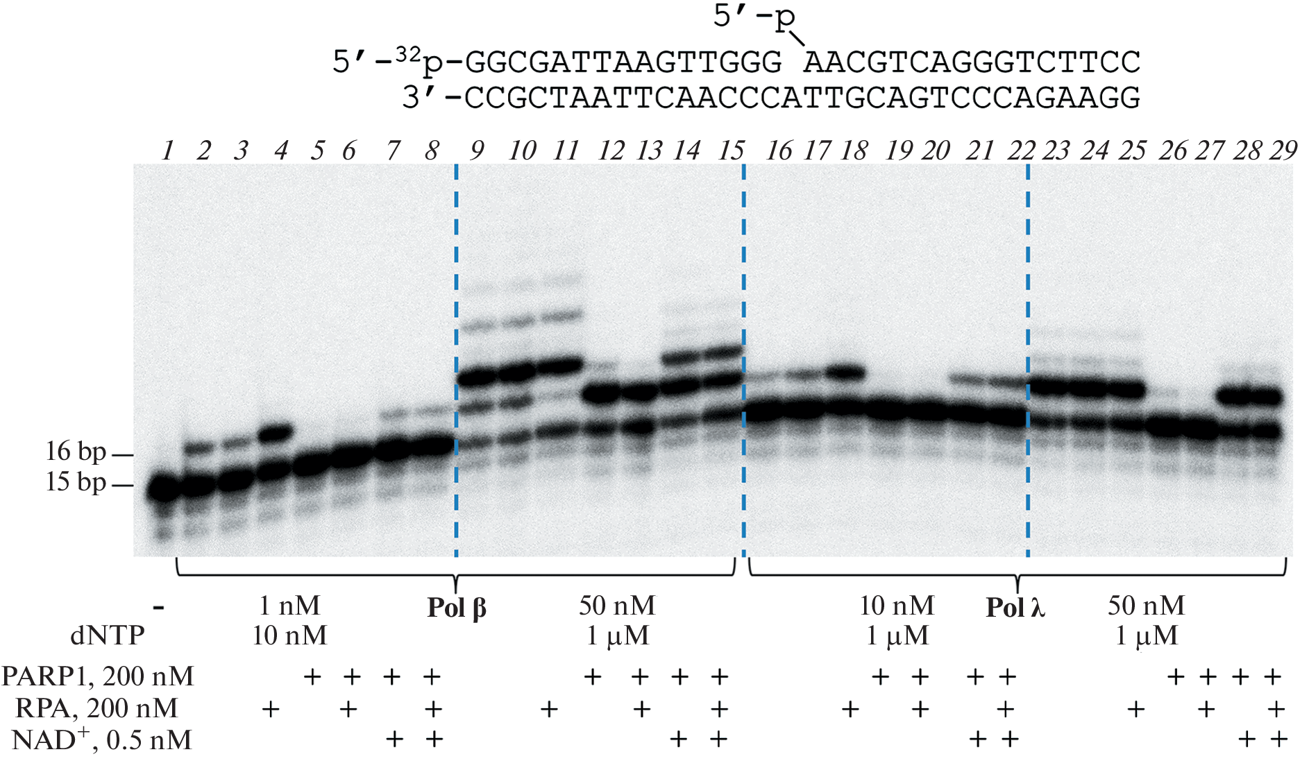 - Sukhanova M., Khodyreva S., Lavrik O. Poly(ADP-ribose) polymerase 1 regulates activity of DNA polymerase beta in long patch base excision repair. // Mutat Res. 2010. V. 685. № 1–2. P. 80–9.