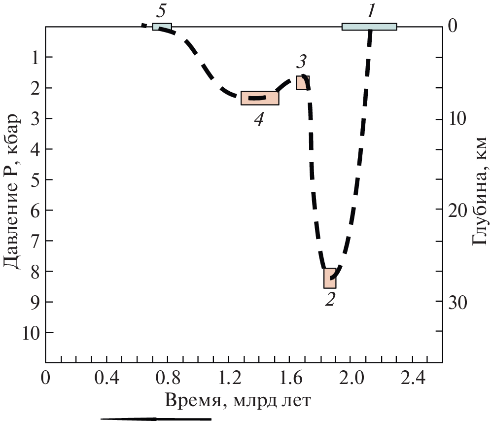Elements of the structure of the Svecokarelian pericratonic zone of the Karelian Massif (SE Fennoscandia), formed after the main events of the Svekofennian tectogenesis, have been identified and characterized. Dated age intervals of the orogenic stage and post-orogenic extensional collapse manifestation, determined the depth levels of the corresponding structures and visualized the scheme of differentiated exhumation of the deep complexes of the post-Proterozoic Savo-Ladoga movable zone. Approximate estimations of exhumation rates of deep material at certain stages of the Precambrian evolution of this zone are given.