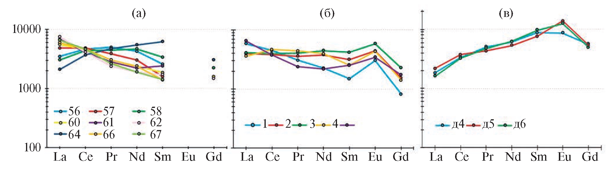 Nпробы | La | Ce | Pr | Nd | Sm | Eu | Gd | Tb | Dy | Y | Ho | Er | Tm | Yb | Lu | P | Th | Sr | Si | Fe | Ce* | Eu* |