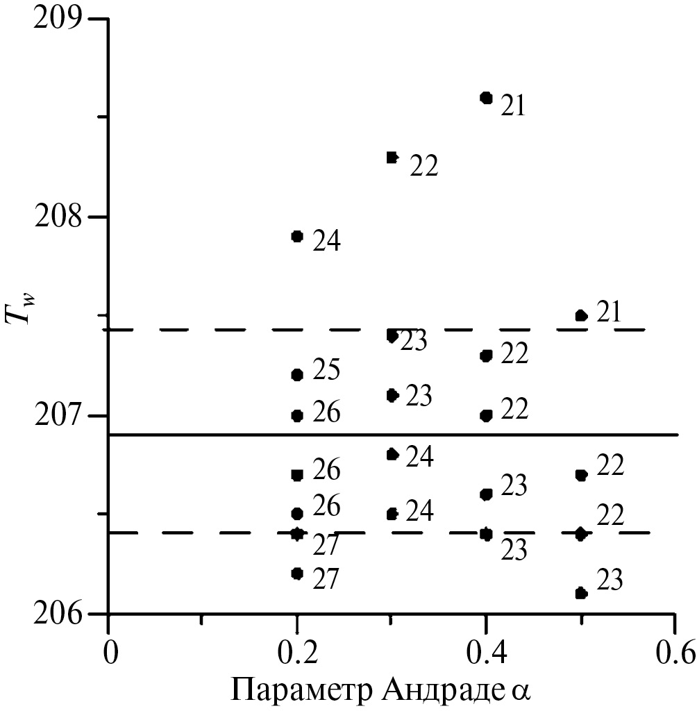 К сожалению, параметр Андраде α точно не определён. Обычно его значение находится в диапазоне 0.2–0.5 [15].
