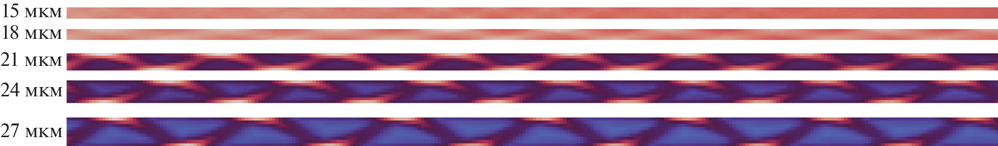 Проведено численное исследование двумерной ячеистой детонации водородно-воздушной смеси в каналах различной ширины и получены данные о процессе формирования ячеистой структуры, о количестве, форме, размере ячеек в зависимости от ширины канала. По результатам расчетов проведена классификация двумерных ячеистых структур детонации. Исследование проводилось на мощностях МСЦ РАН. Модель течения многокомпонентной реагирующей смеси реализована с использованием кастомизированного солвера opensource программного обеспечения OpenFоam на основе схемы Курганова–Тадмора.