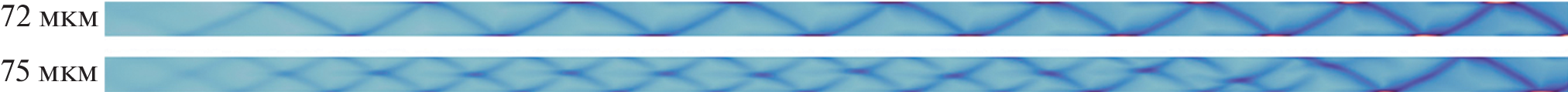 ДЕФОРМАЦИЯ ДВУМЕРНОЙ СЛЕДОВОЙ КАРТИНЫ ТЕЧЕНИЯ ДЕТОНАЦИИ ПРИ “НЕПРЕРЫВНОМ” ИЗМЕНЕНИИ ШИРИНЫ ПЛОСКОГО КАНАЛА