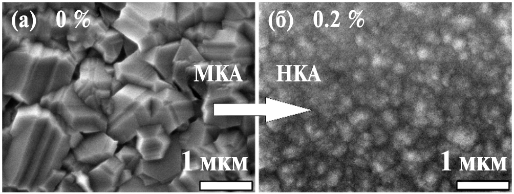 В данной работе исследовано влияние небольших добавок азота (N2) в газовую смесь при CVD-росте на структуру и шероховатость выращенных ПКА пленок. В частности, целью являлось определение пороговых концентраций азота для перехода структуры пленок из МКА в НКА.