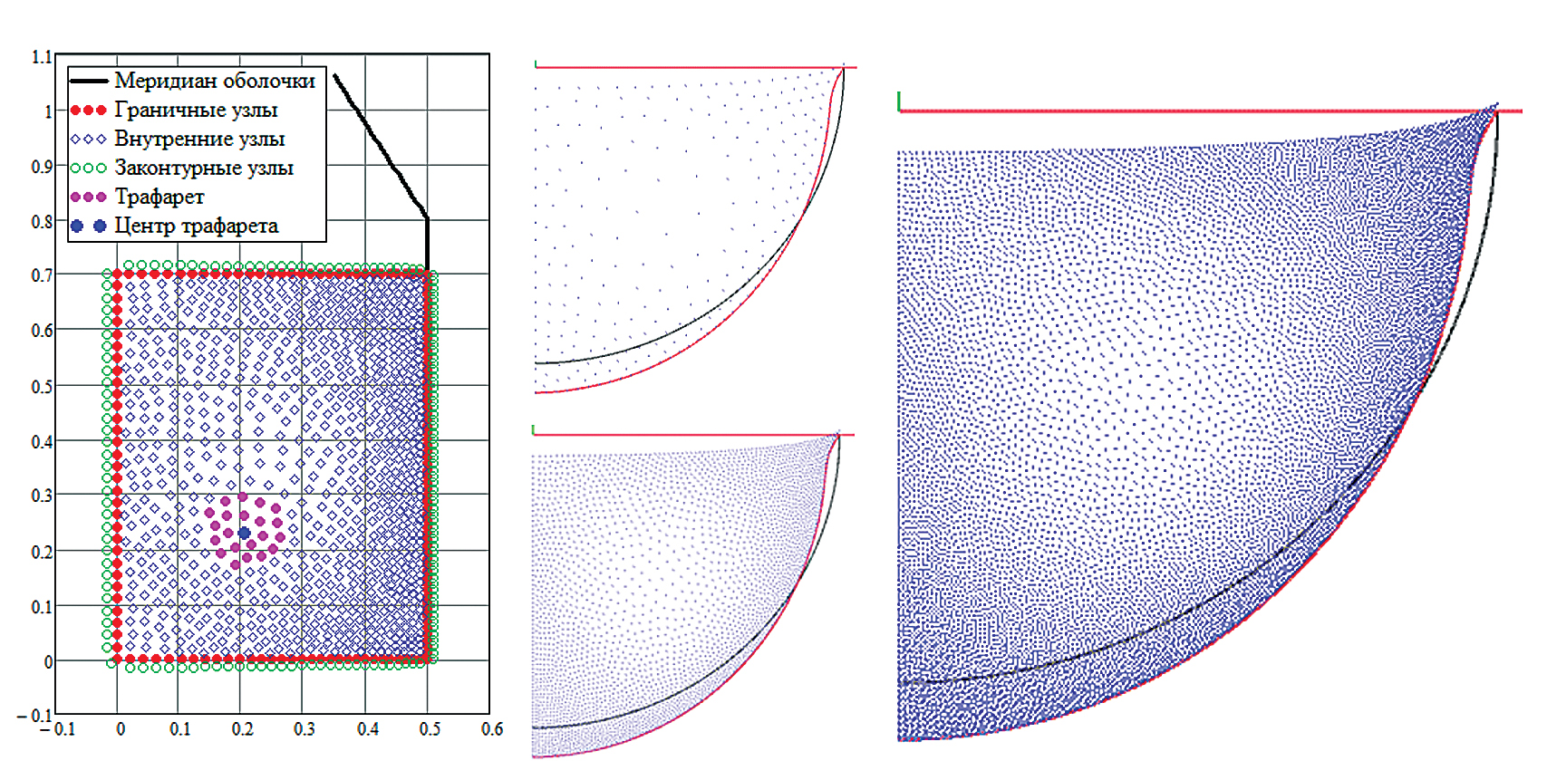 Рис. 3. Примеры заполнения расчетной области узлами.