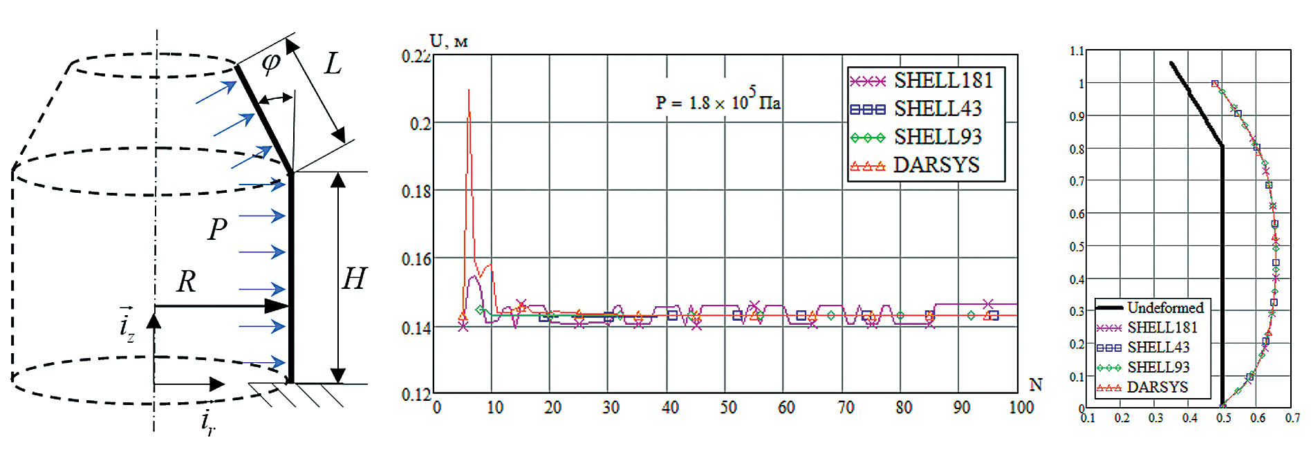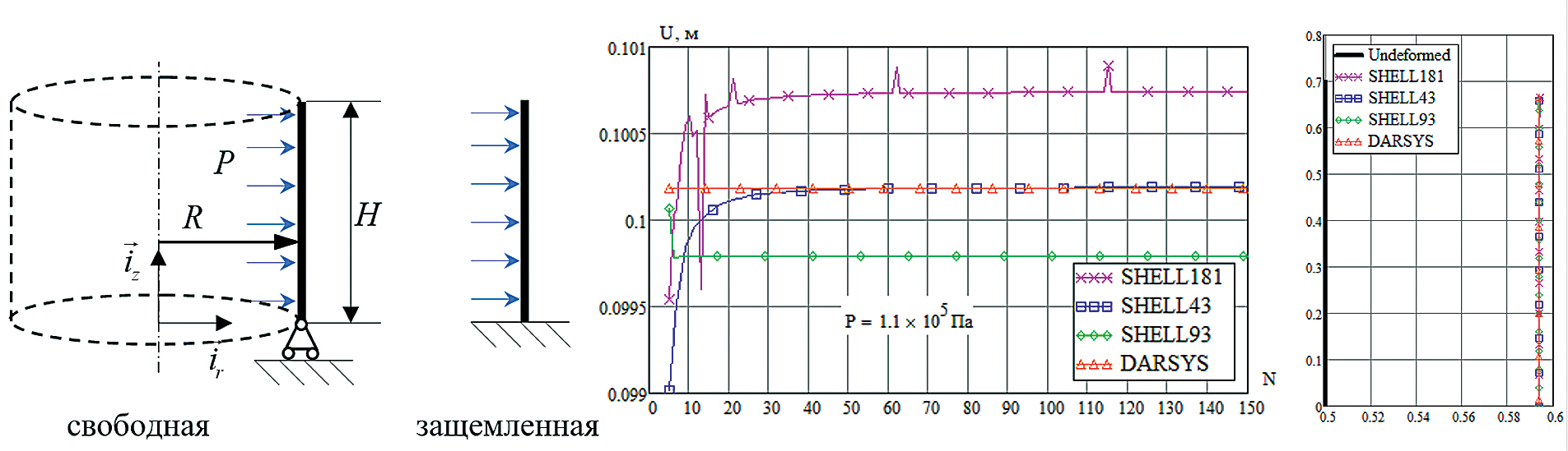 Рис. 4. Цилиндрическая оболочка. Результаты расчета.