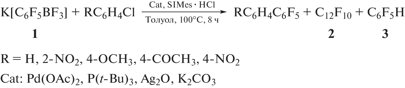 UNEXPECTED EFFECT OF N-HETEROCYCLIC CARBENE ON THE CATALYTIC ACTIVITY OF PALLADIUM COMPLEX IN THE CROSS-COUPLING REACTION OF K[C6F5BF3] WITH ARYL CHLORIDES