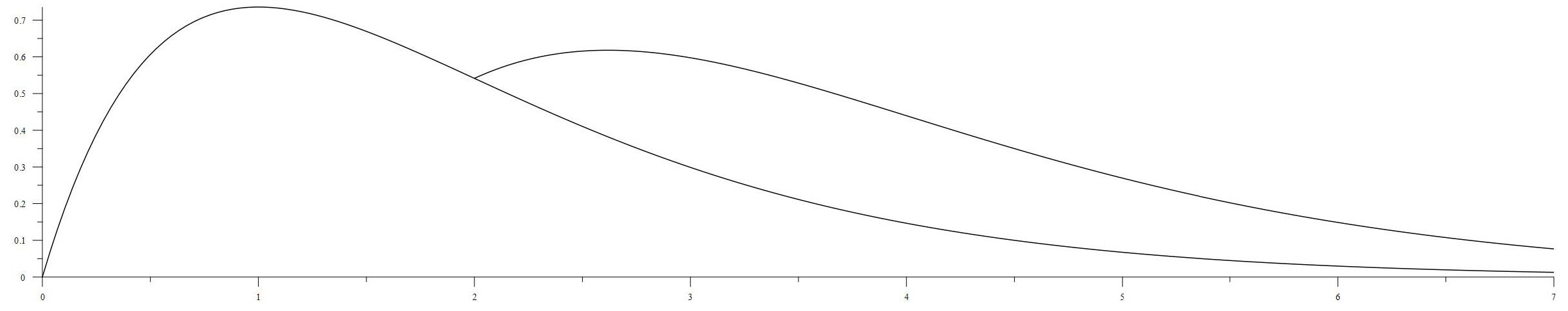 На рисунке 9 показаны кривые и Видно, что они совпадают на промежутках и Границы промежутков указаны не точно.