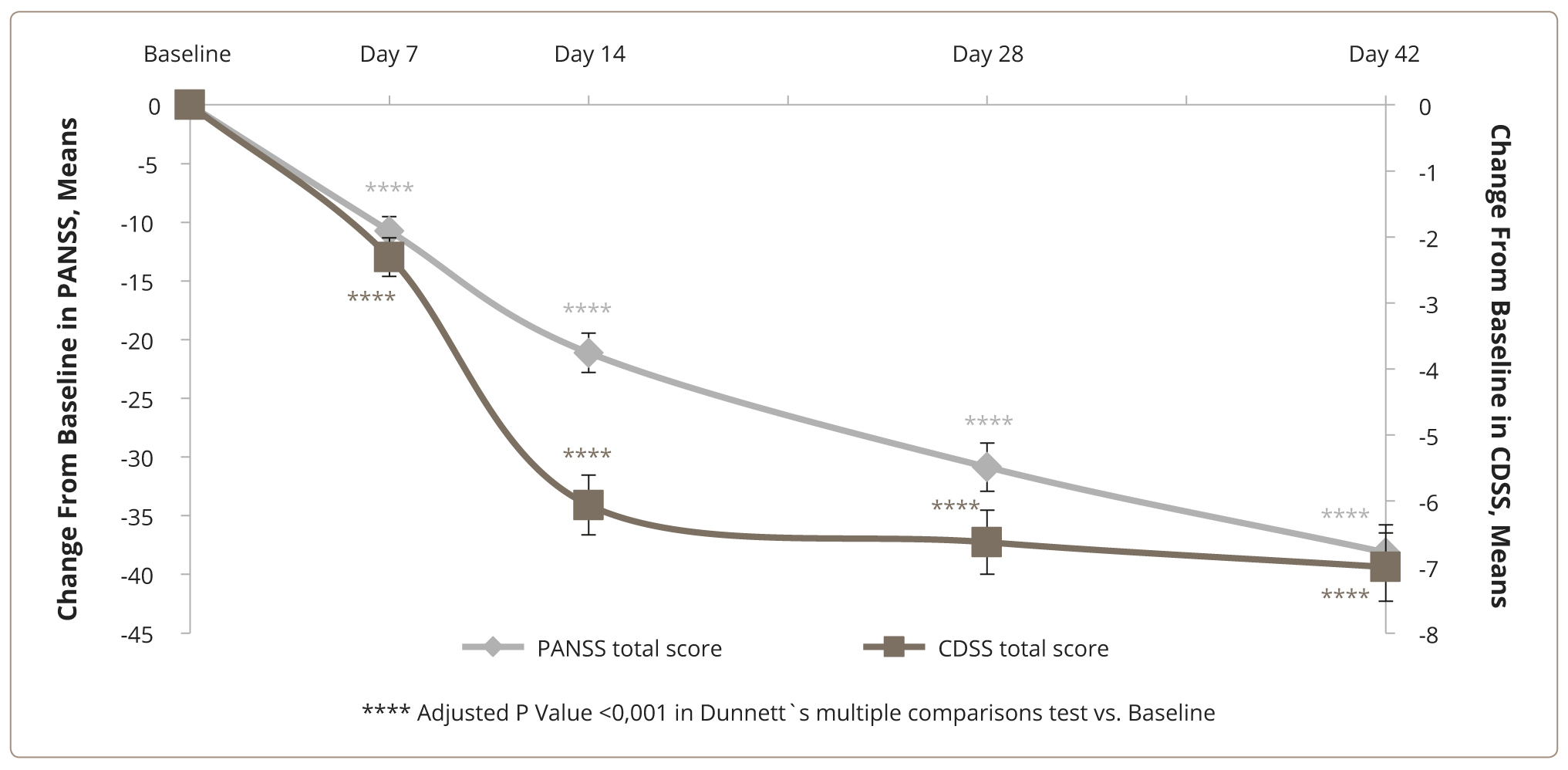 Figure 1. Changes in the total PANSS and CDSS scores.