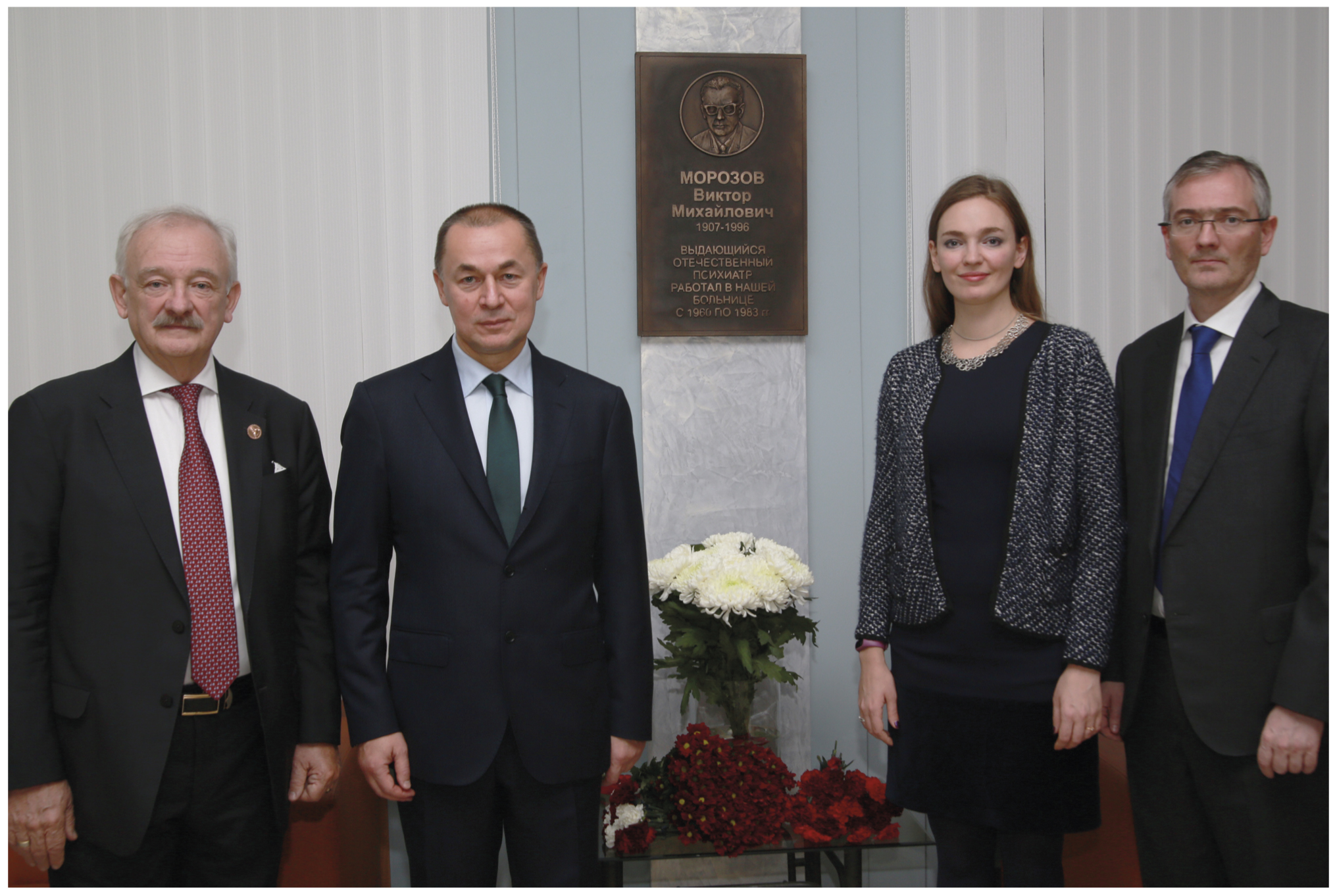 The fact is that Viktor Mikhailovitch’s professional career was mostly connected with the Alexeev Hospital. Back then, it was still named after Petr Petrovitch Kashchenko. Therefore, as a child, Petr Viktorovitch had to spend a lot of time there, too. Studying at the Second Medical Institute was also associated with this hospital, and his subsequent professional development wouldn’t be complete without the work at the Kashchenko Hospital. So, Petr Viktorovitch suggested that we should have a bas-relief portrait of Viktor Mikhailovich on the wall of the hospital. He ordered it at his own expense. And every year on October 29, on the day of Viktor Mikhailovitch’s birthday, Petr Viktorovitch and his children brought fresh flowers to the memorial plaque. I am sure this tradition will go on.