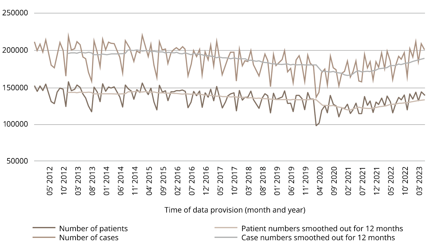 Figure 1. Psychiatric outpatient turnover in the health care system of Hungary: 2012–2023.