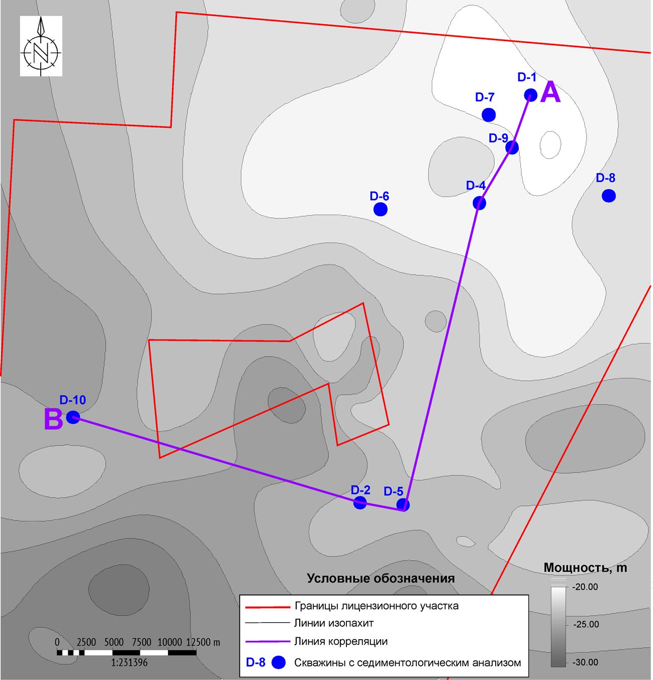 На северо-востоке Даниловского ЛУ преобладали более мелководные условия шельфа, где фиксируются больший объем зернистых структур и сокращенные мощности пласта Б5.