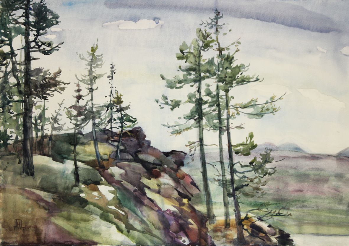 Рис. 2. Денисова Анастасия Владимировна (Сыктывкар). Вид с переправы. 2023. Бумага, акварель
