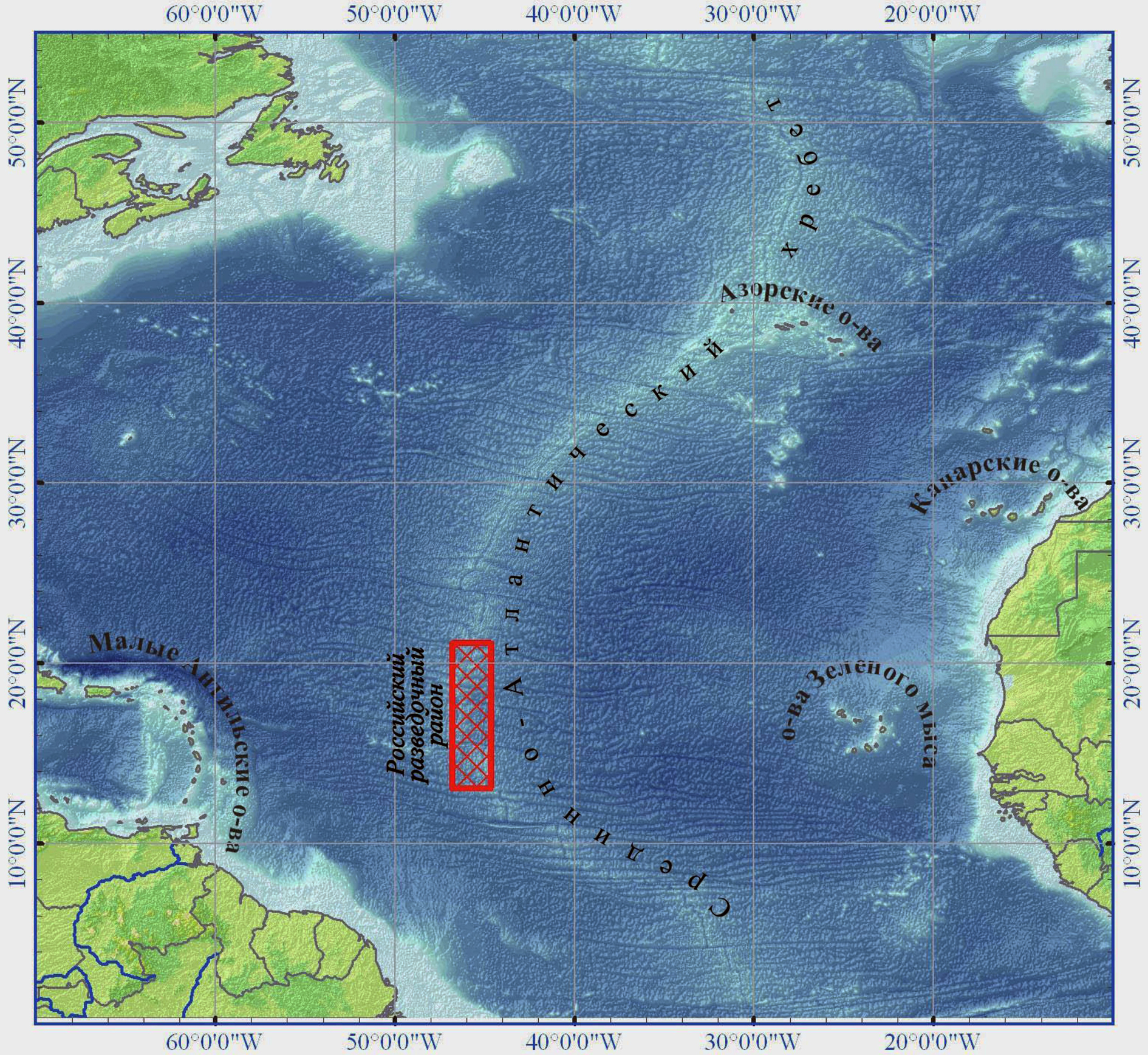 Рис. 1. Схема расположения Российского разведочного района в Атлантическом океане