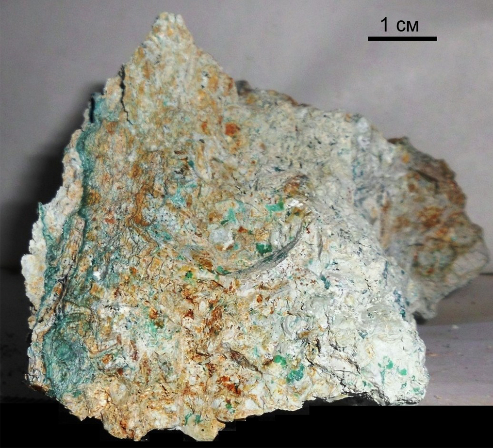 Рис. 14. Атакамит-паратакамитовая запечатанная труба. Рудное поле Петербургское. Станция 33L159g