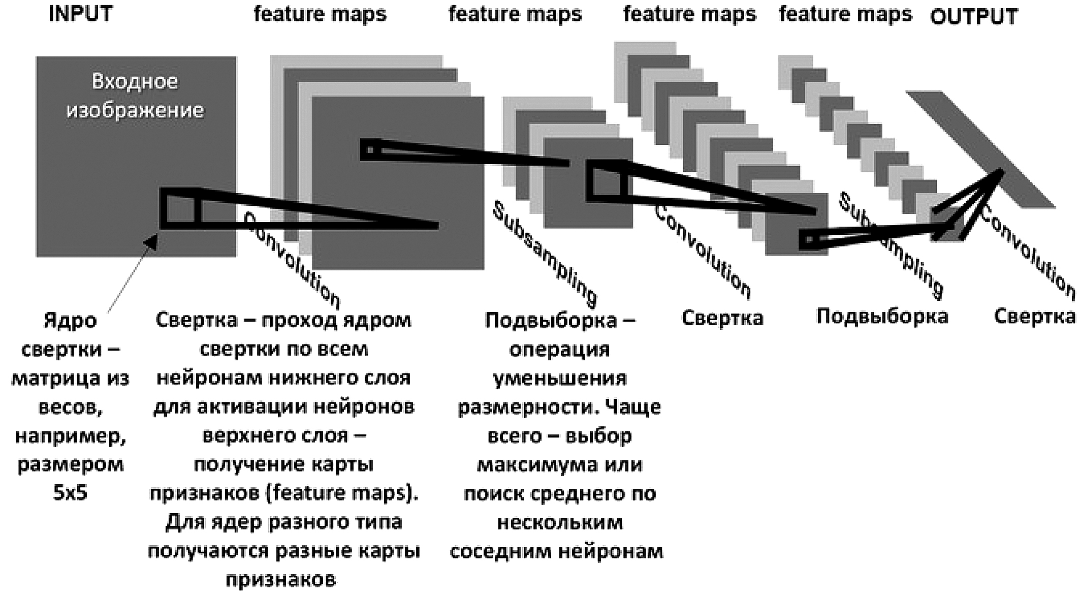Рис. 2. Архитектура свёрточной нейросети в общем виде (LeCun et al., 1995)