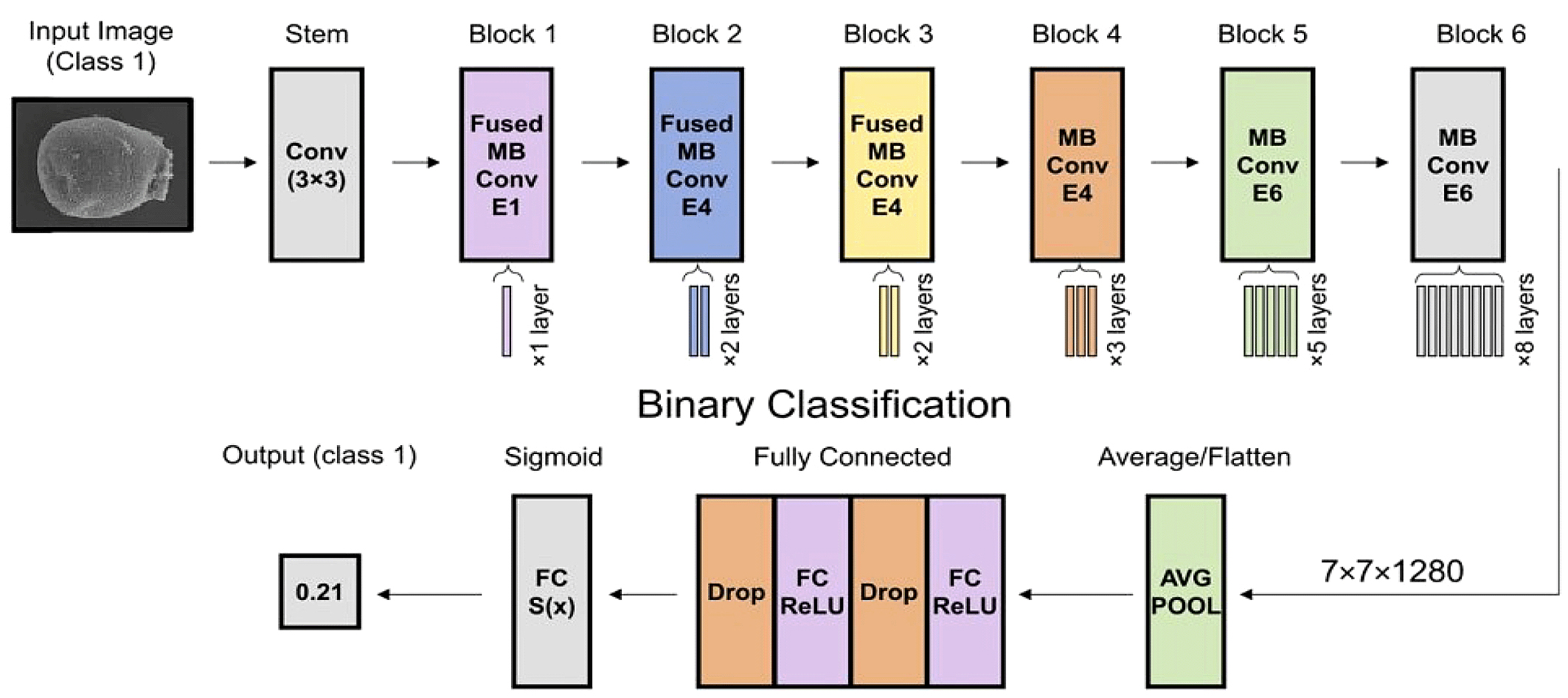 Fig. 3. Architecture of the neural network EfficientNetV2B0
