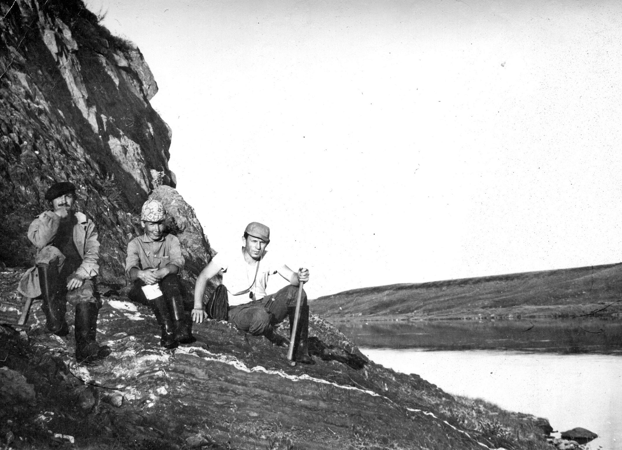 On the Lyadgey-Yaha River. Laboratory assistant L. Morokhina and worker Lyonya are near Vladimir, 1974