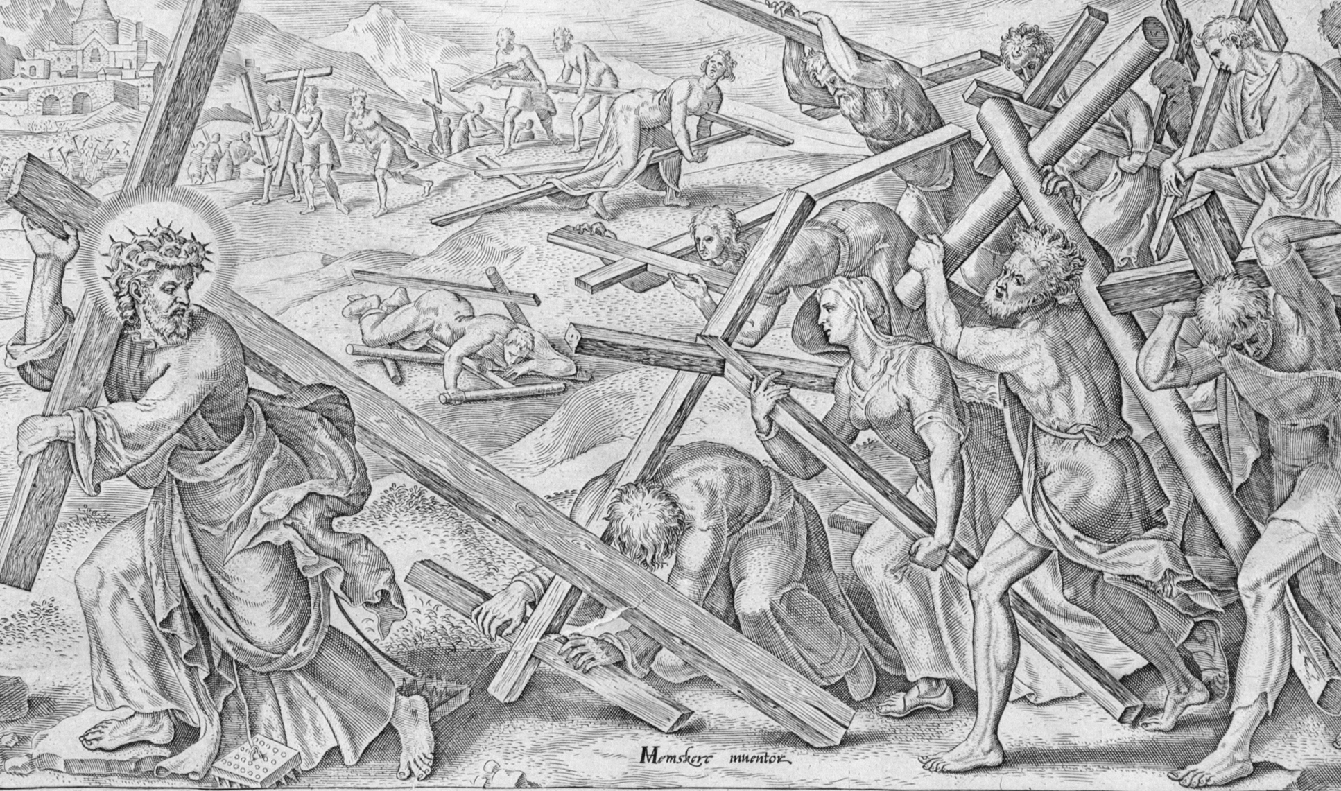 Гравюры Pater noster Библии Пискатора исполнены по рисункам Мартена ван Хемскерка (1498-1574) (ил. 3-7) – живописца и рисовальщика, автора портретов, пейзажей, картин на мифологические и библейские сюжеты [См. о нем: 10; 11]. Будучи младшим современником Микеланджело, Хемскерк вдохновлялся его искусством, сочиняя собственные композиции. В частности, как установил Аксель Л. Ромдаль, Хемскерк обращался к рисунку Микеланджело, трудясь над алтарным образом церкви Святого Лаврентия в Алкмаре [12, p. 276].
