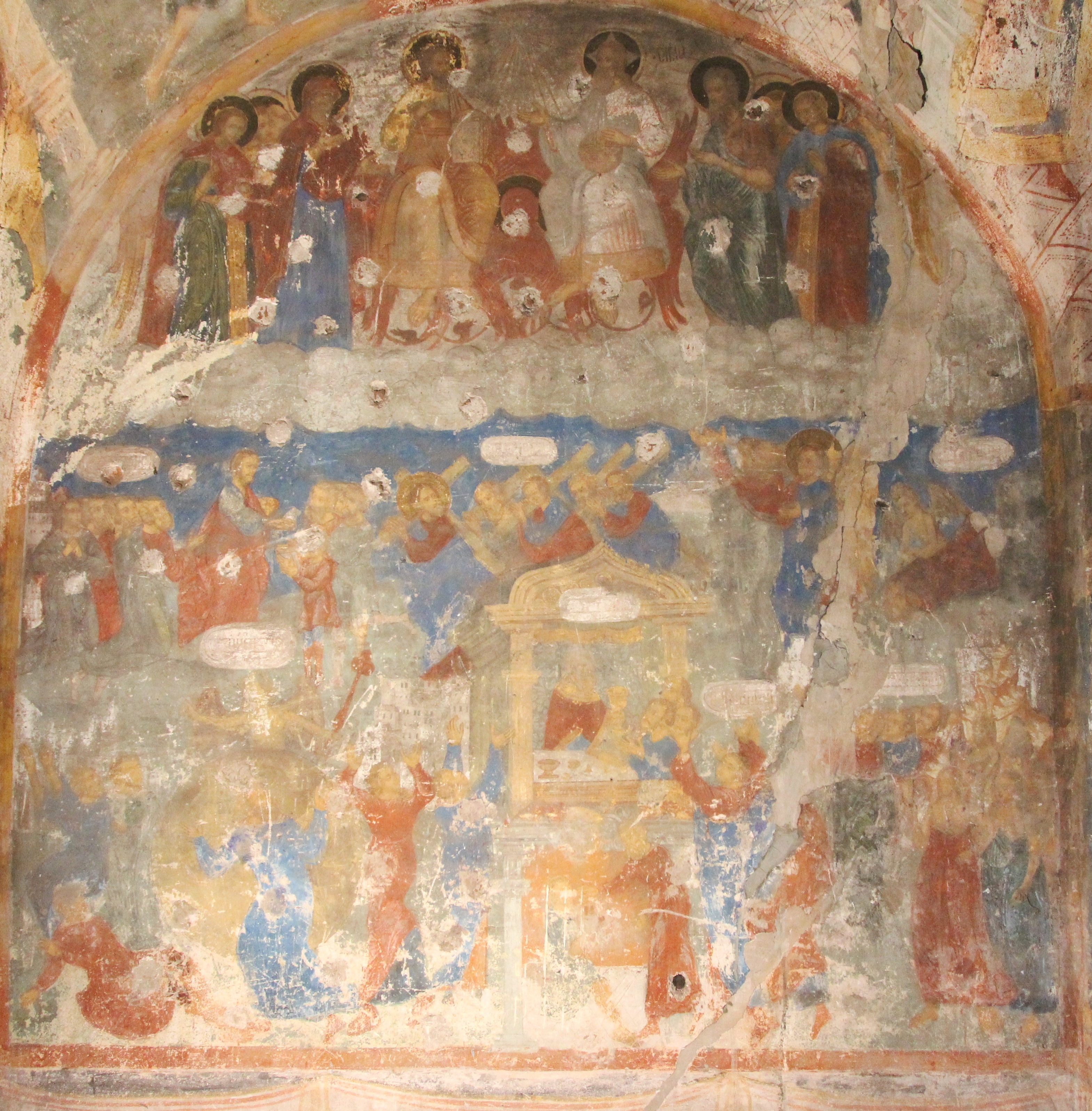 Определение источников необычных композиций «Отче наш» этого храма – самостоятельная исследовательская задача; существенно, что мы впервые имеем дело с циклом в виде единого фриза, последовательно размещенного в одном ярусе росписей.