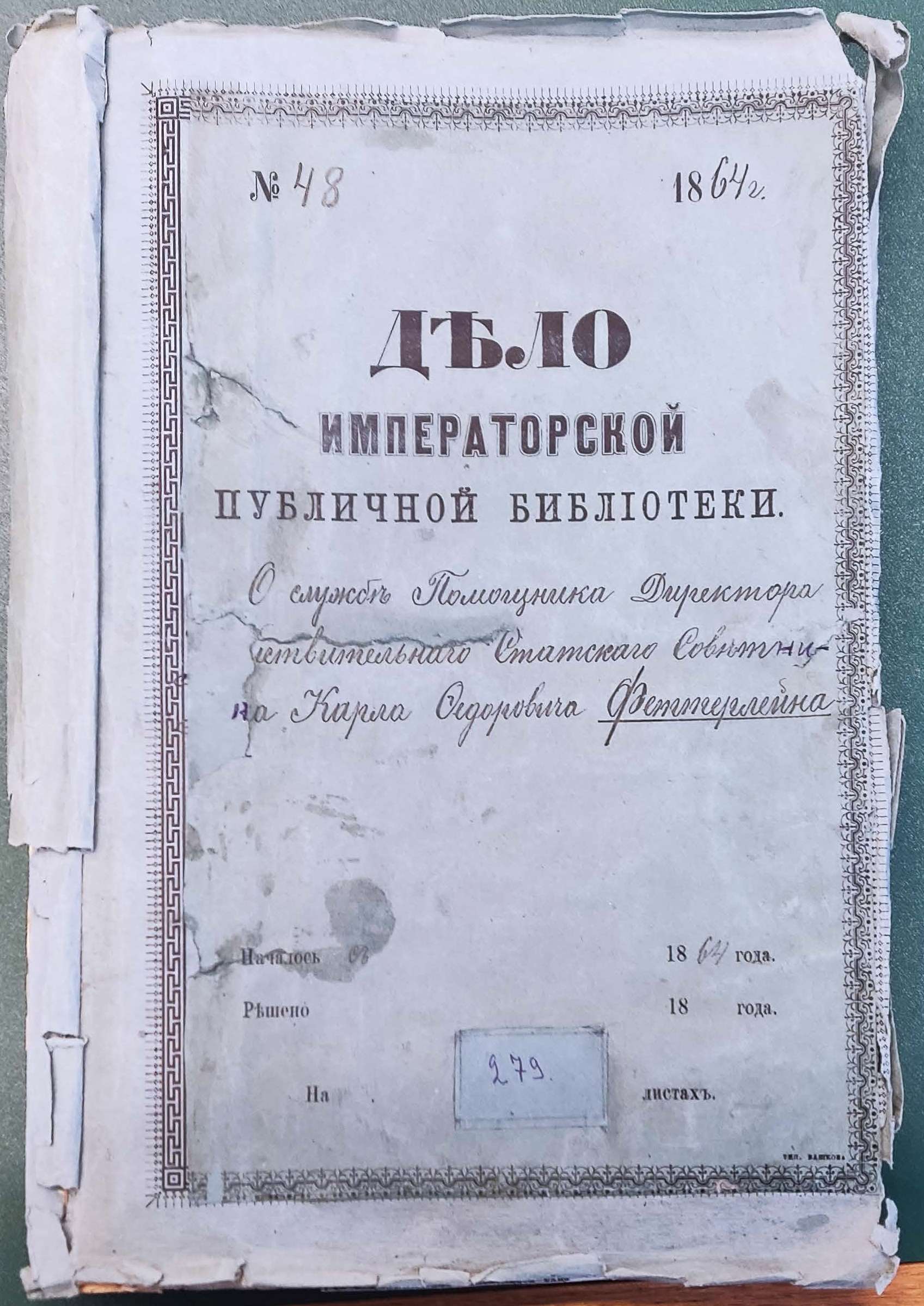Karl Fedorovich Fetterlein as an employee of the Rossika branch of the Imperial Public Library