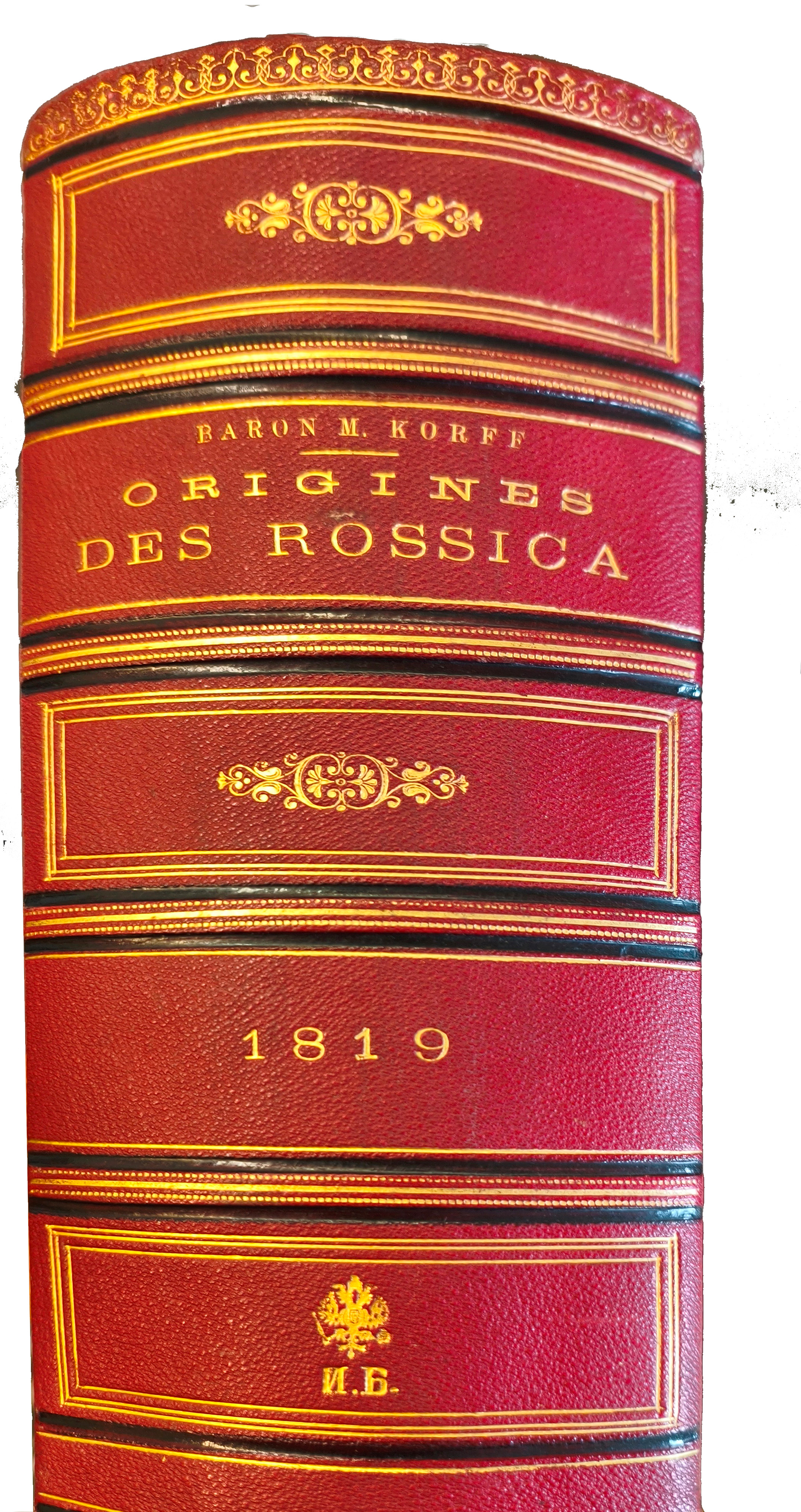 «После того как был напечатан “Catalogue des Rossica” граф М.А. Корф подарил мне в янв. 1874 года эти три дневника за 1819–1822 годы. Из них видно, как идею собирать сочинения на иностранных языках о России, возникшую у него 60 лет тому назад, ему удалось блестяще осуществить через 30 лет.