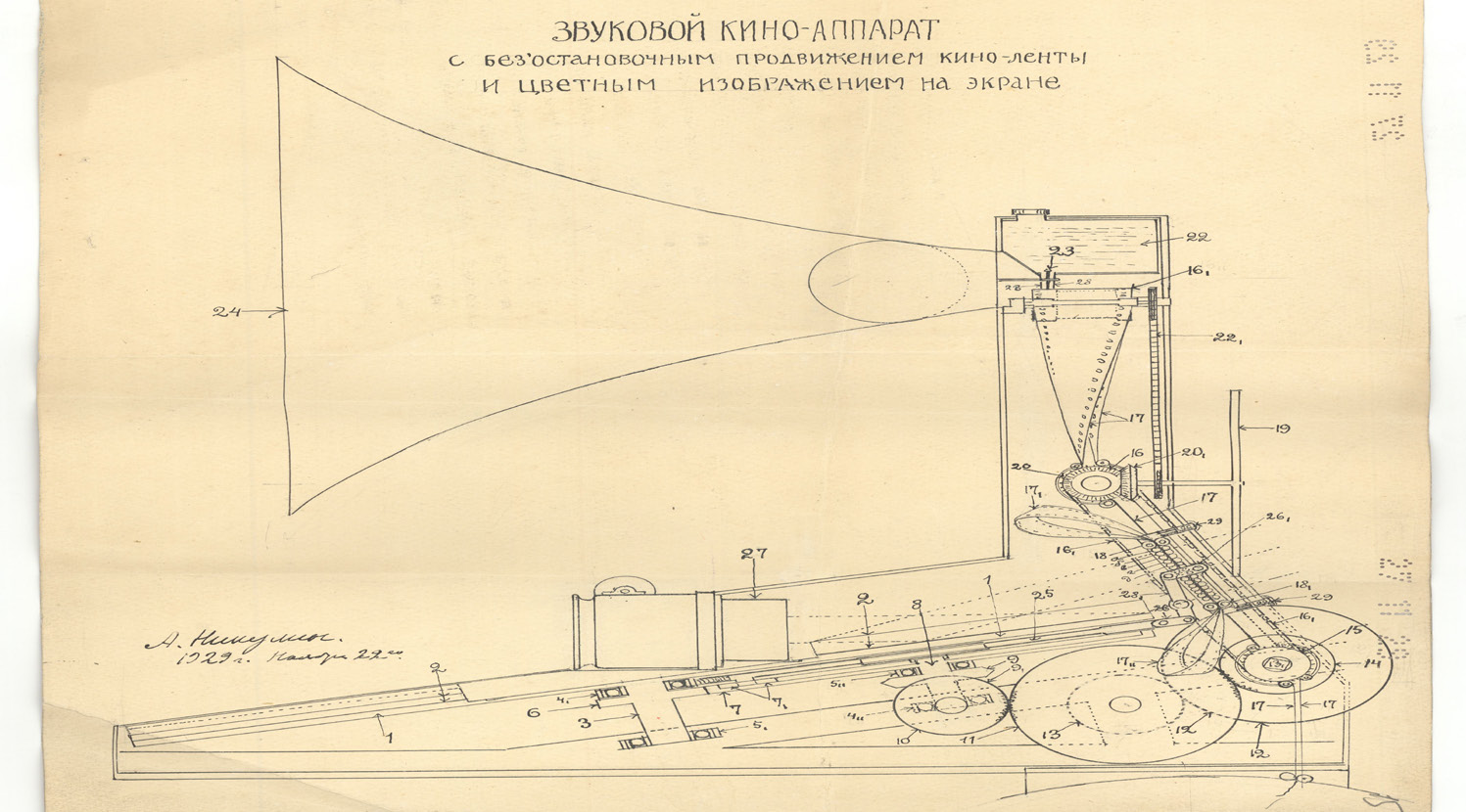 Звуковое кино в предлагаемом им аппарате предполагало сочетание граммофона с кинопроектором и съемочным аппаратом непрерывного продвижения киноленты с оптическим выравниванием, запатентованным им ранее в разных вариантах. К сожалению, по мнению эксперта Комитета по делам изобретений А.Г. Берзмана, осуществить данное предложение без догадок, предположений и ряда опытов и изысканий было невозможно. Он посчитал целесообразным в выдаче патента Никулину отказать и принять его предложение только как постановку задачи, для решения которой предложенного описания и чертежей недостаточно11.