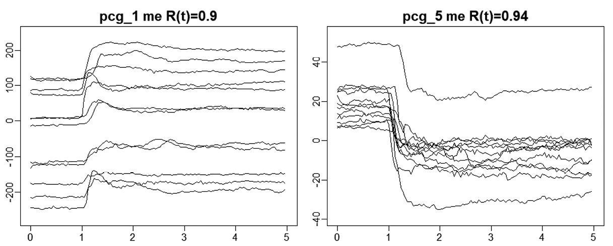 Анализ главных компонентов на объединенном наборе данных показывает высокую временную согласованность 1-й и 2-й компоненты. Визуальный анализ показывает выраженную согласованную динамику на диапазоне 1—3 сек. Результаты представлены в Таблице 27, на Рис. 25. Пространственная реконструкция показывает, что 1-я компонента связана с движением вперед – вверх, 2-я – с движением назад.