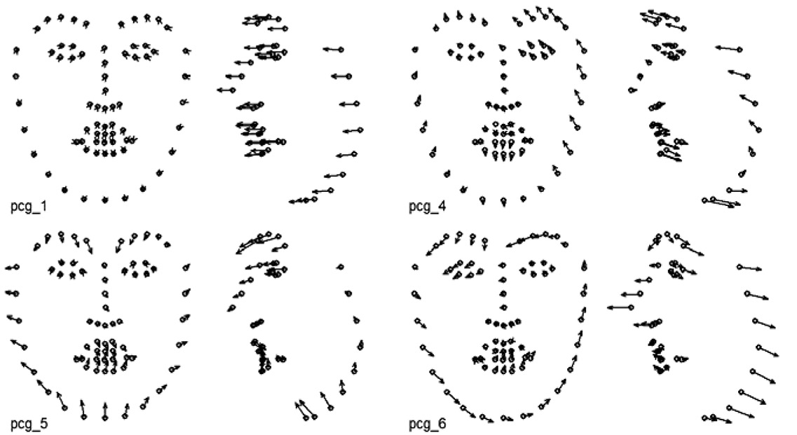 3) анализ нагрузок эмпирических главных компонент, вычисляемых на основе координат ключевых точек раздельно для каждого набора данных;