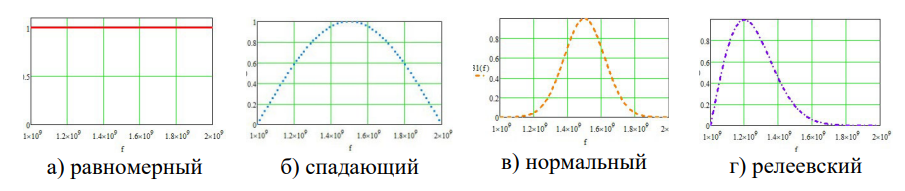 - законы моделируемых спектров – равномерный, спадающий, нормальный, Релея;