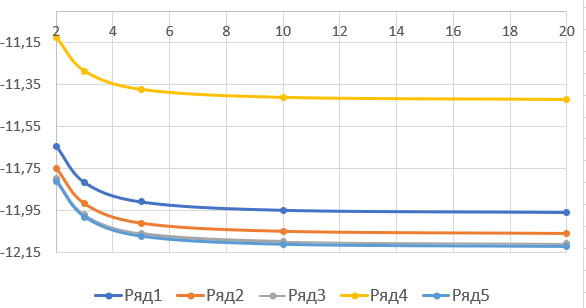 5. | Монохроматический | -11,81 | -11,98 | -12,08 | -12,11 | -12,12 |