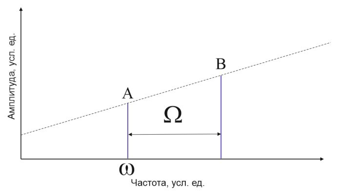 Суммарный двухчастотный отклик, следовательно, может быть записан как сумма колебаний на несущих частотах: