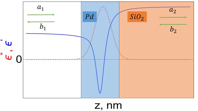 Заметим, что малым параметром в нашем подходе является величина , которая связана с поверхностной диэлектрической проницаемостью соотношением . В частности, в приведённом ниже расчёте для палладиевой плёнки величина оказывается меньше 0.1, тогда как принимает значения порядка единицы.